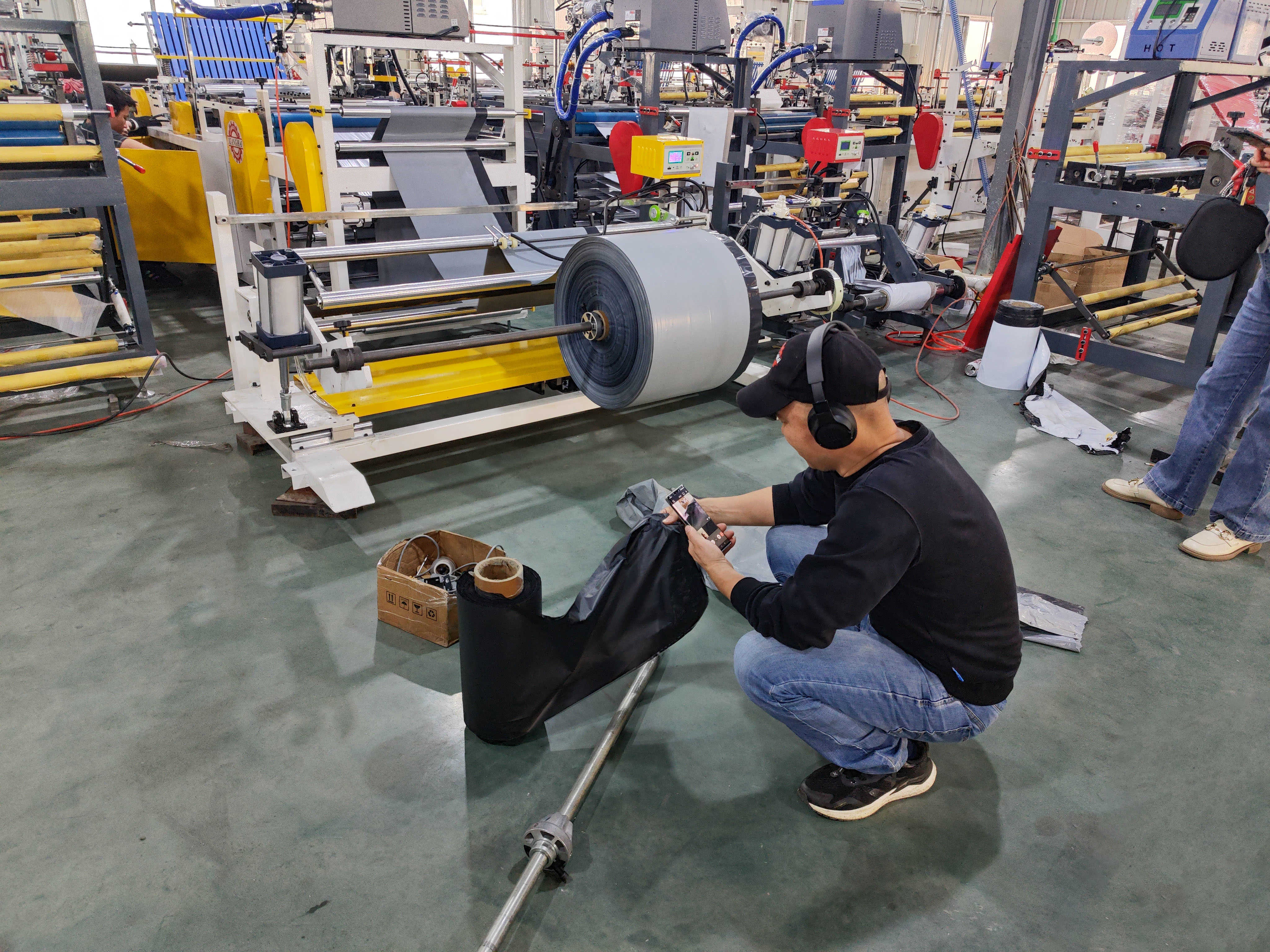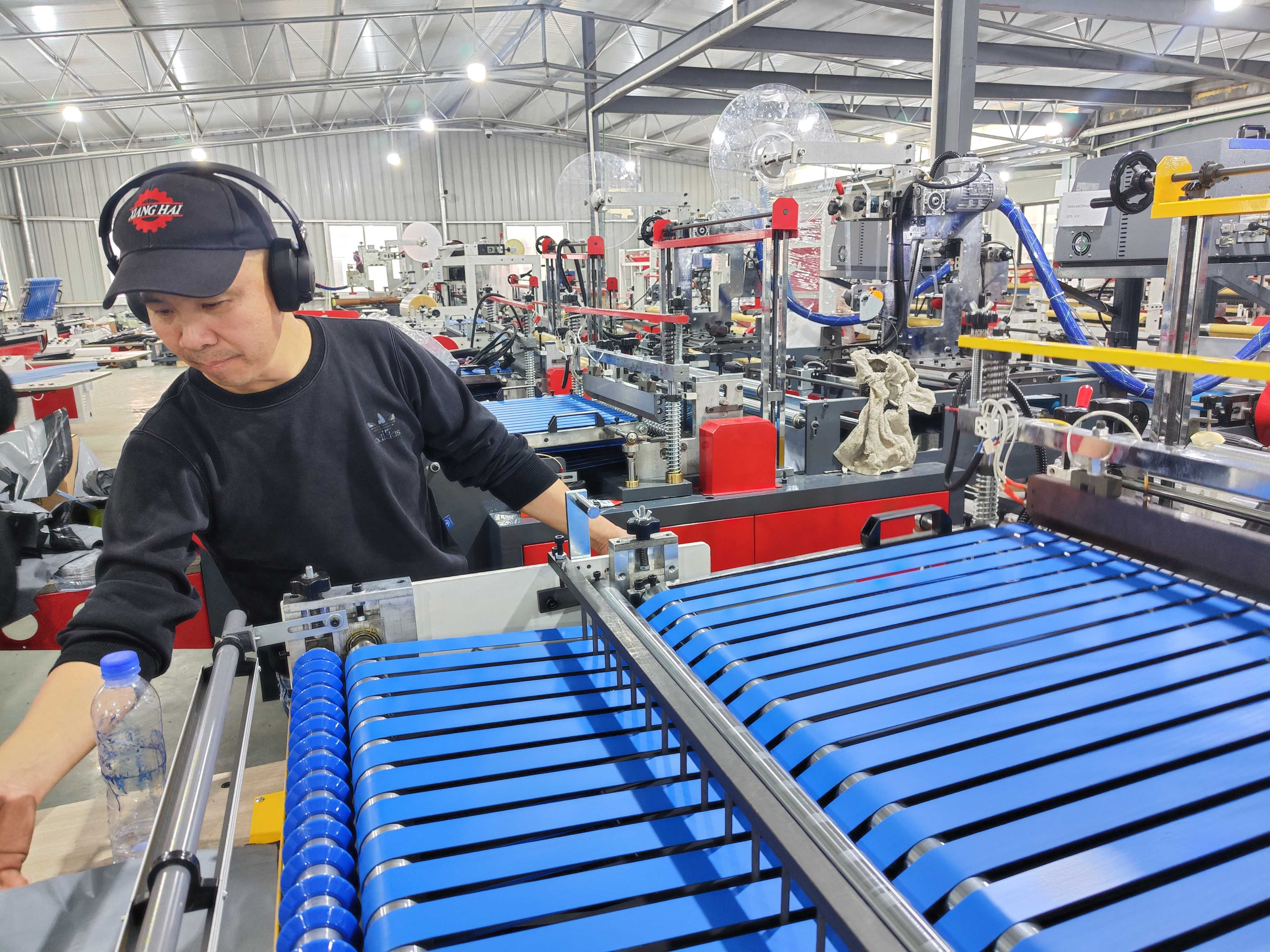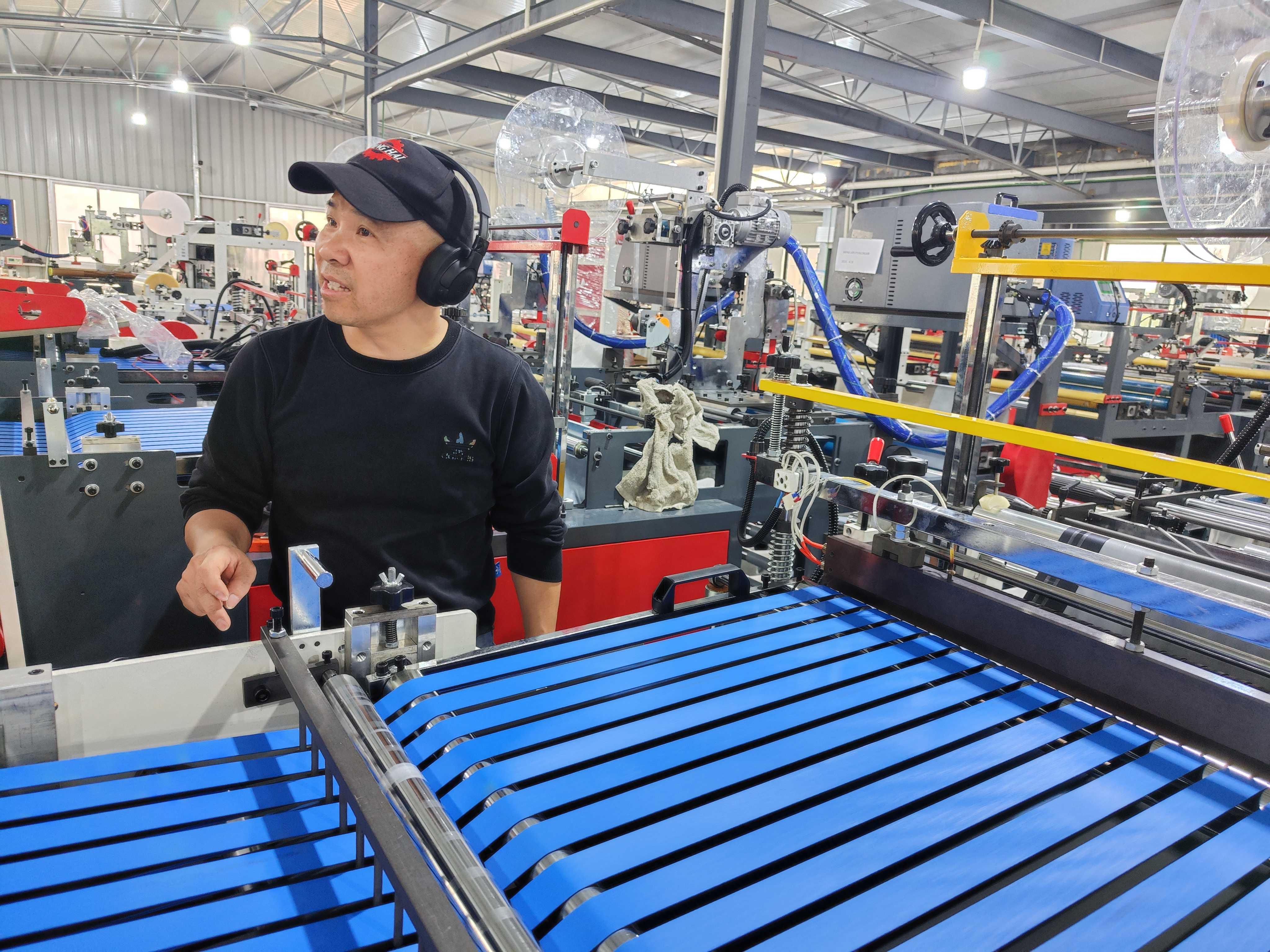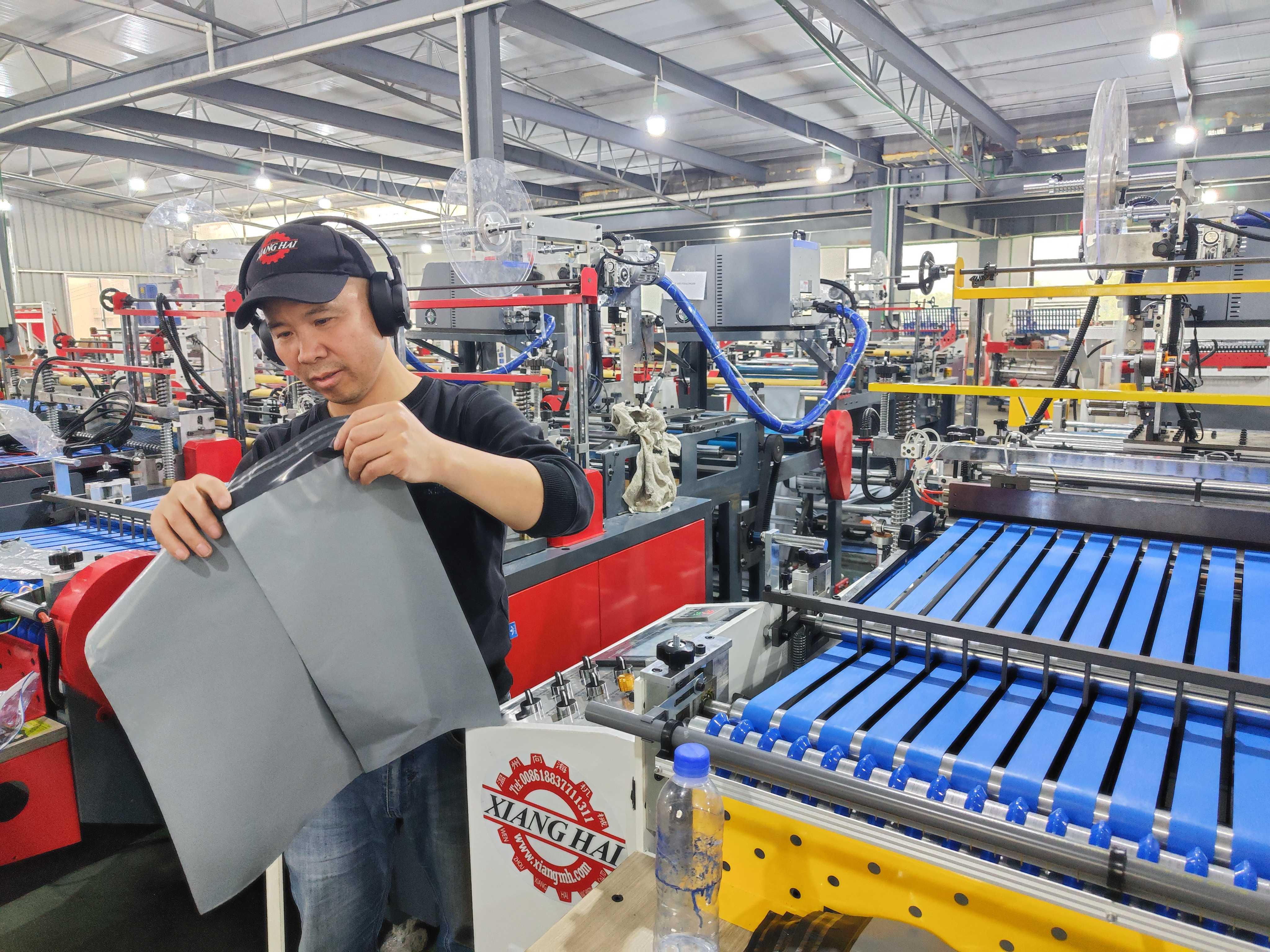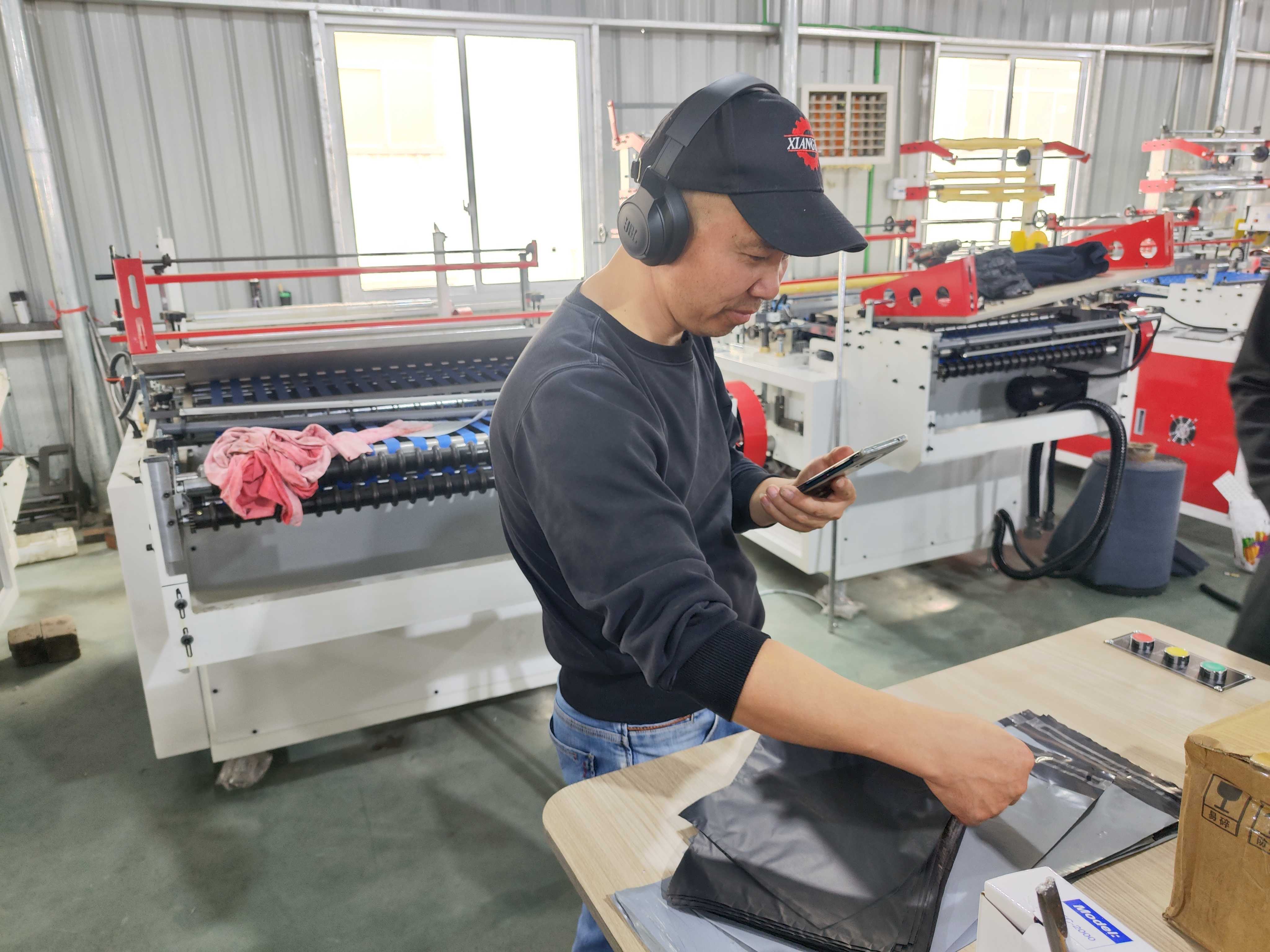 Russian customer online test machine - Hot melt glue courier bag making machien