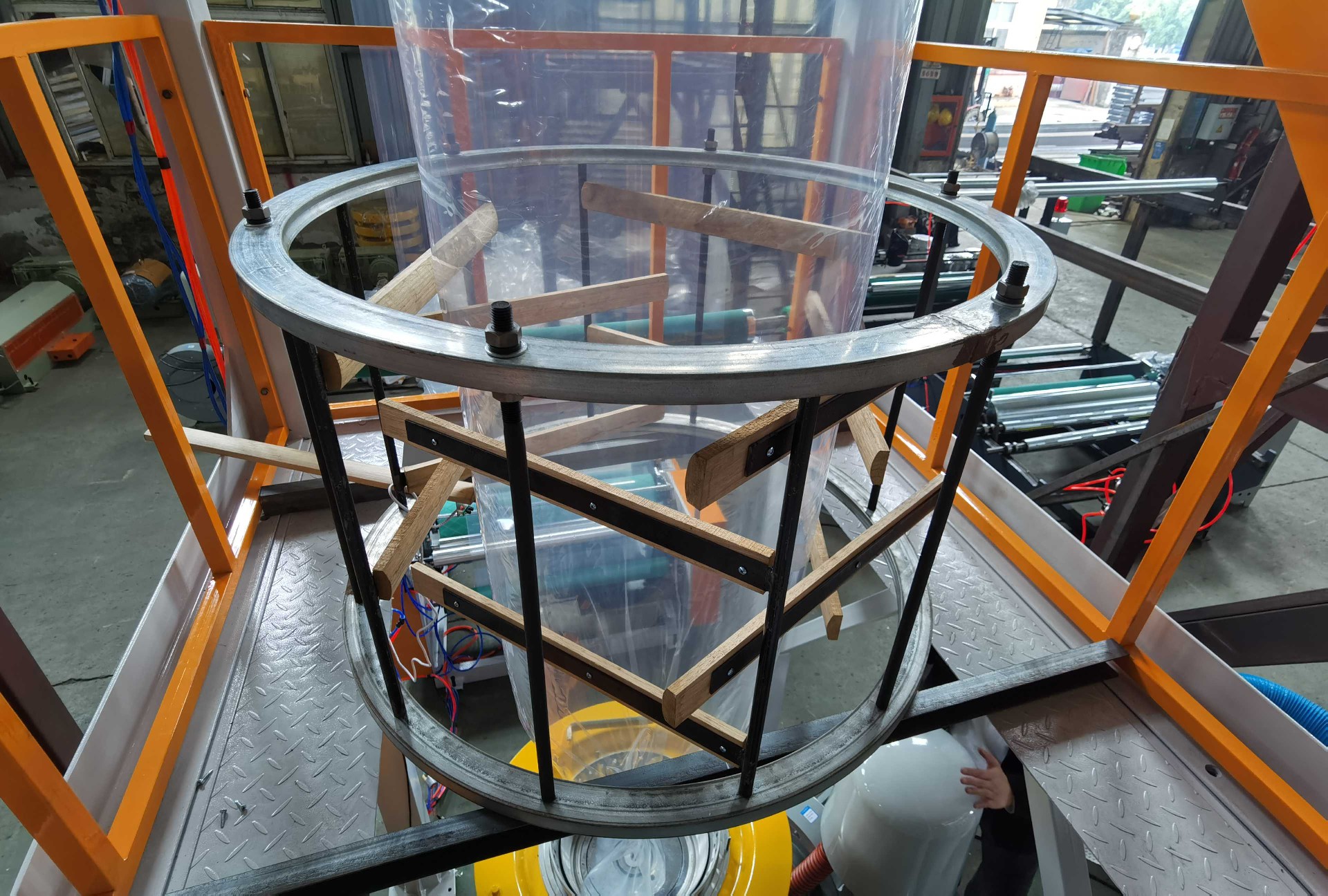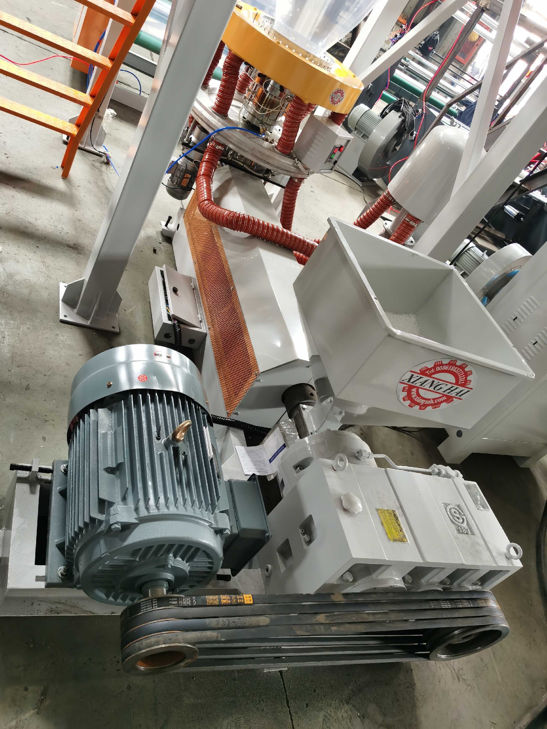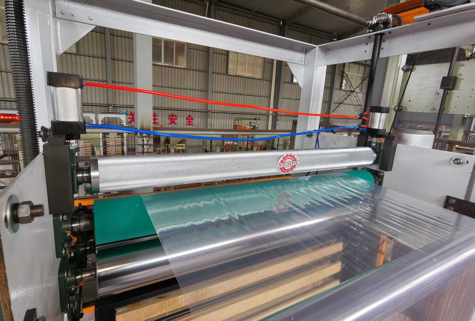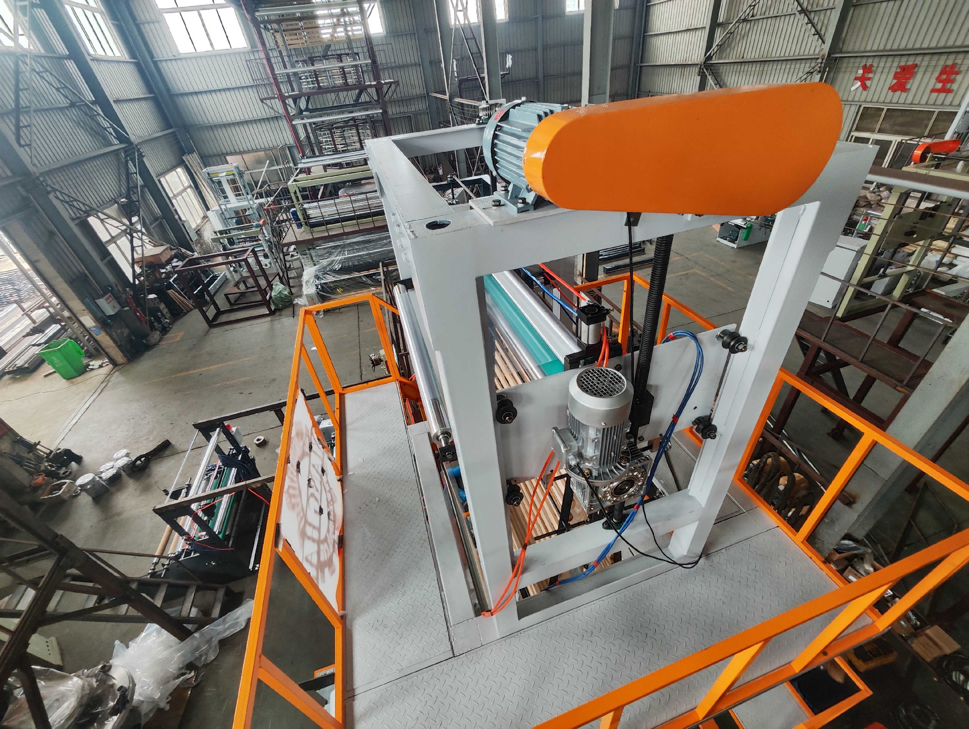 It is the plastic film blowing machine for blowing PE(HDPE, LDPE, LLDPE), film; film are widely used for packing liquid, industrial products, garments and textile; for making plastic bags, like T-shirt bag, flat bags, garbage bags etc.