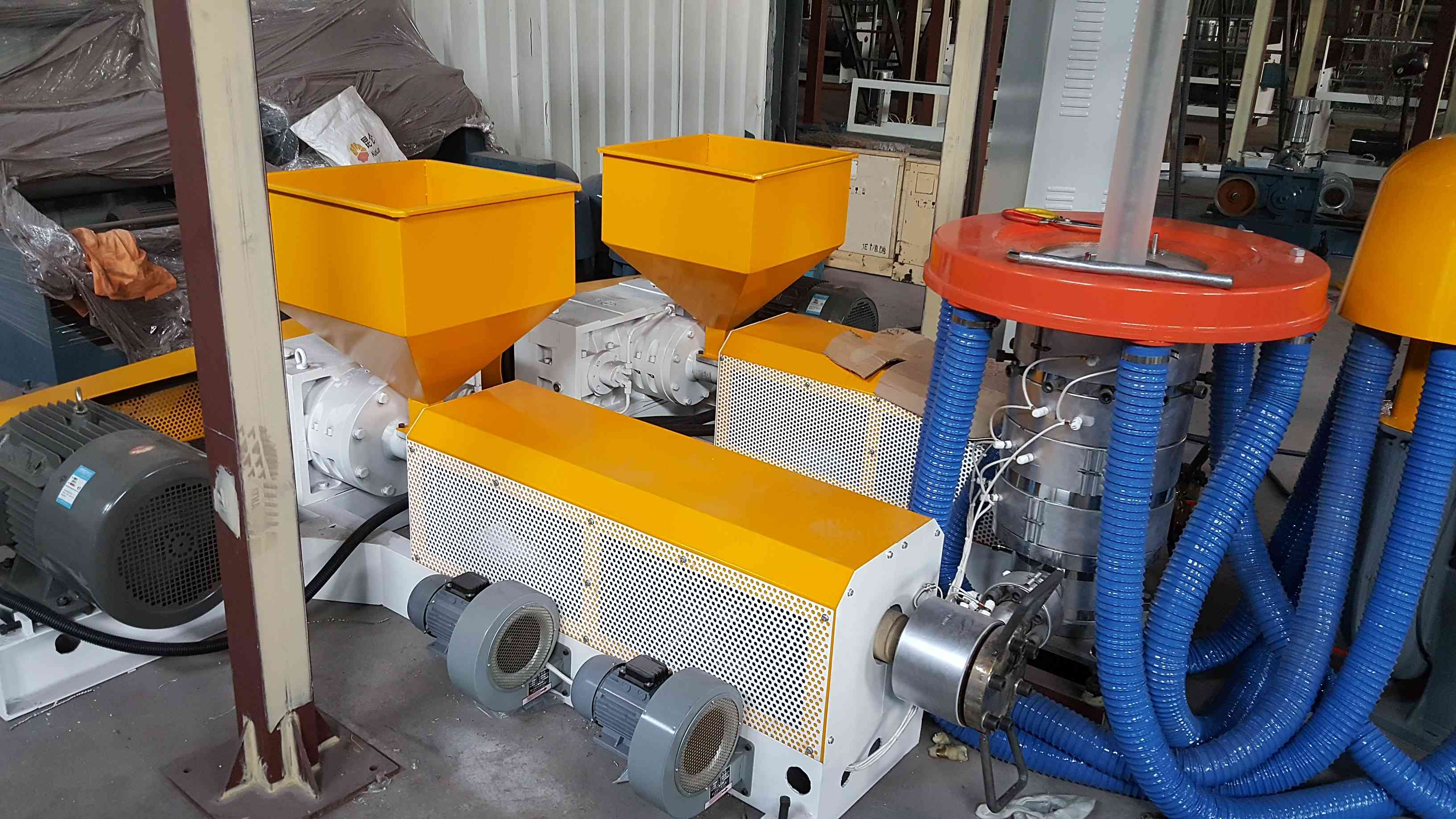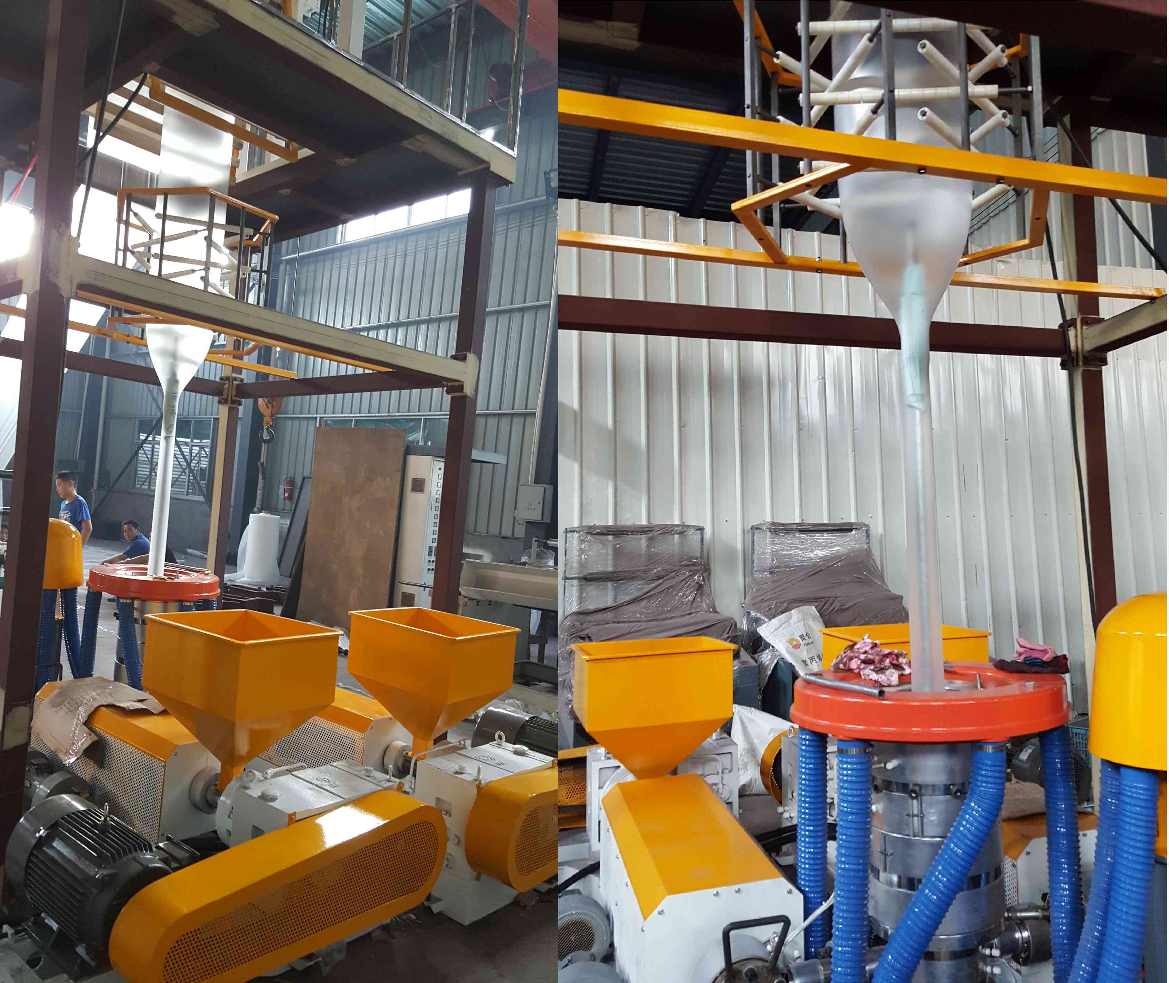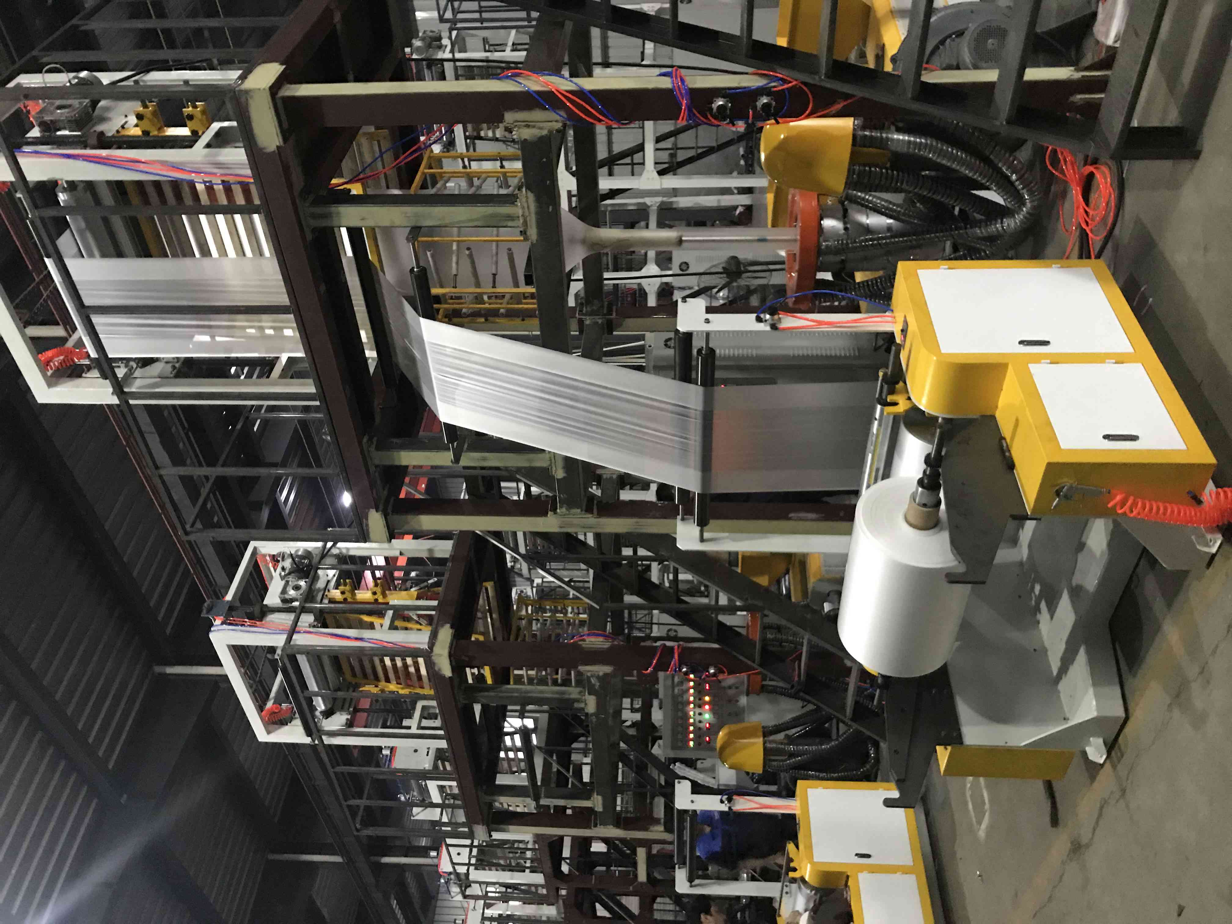 The ABA film blowing machines can make the film is 30% stronger than one layer film, and production cost can be saved up to 50%. Based on the unique screw design, up to 80% CaCo3 can be added to machine with excellent mixing effect.