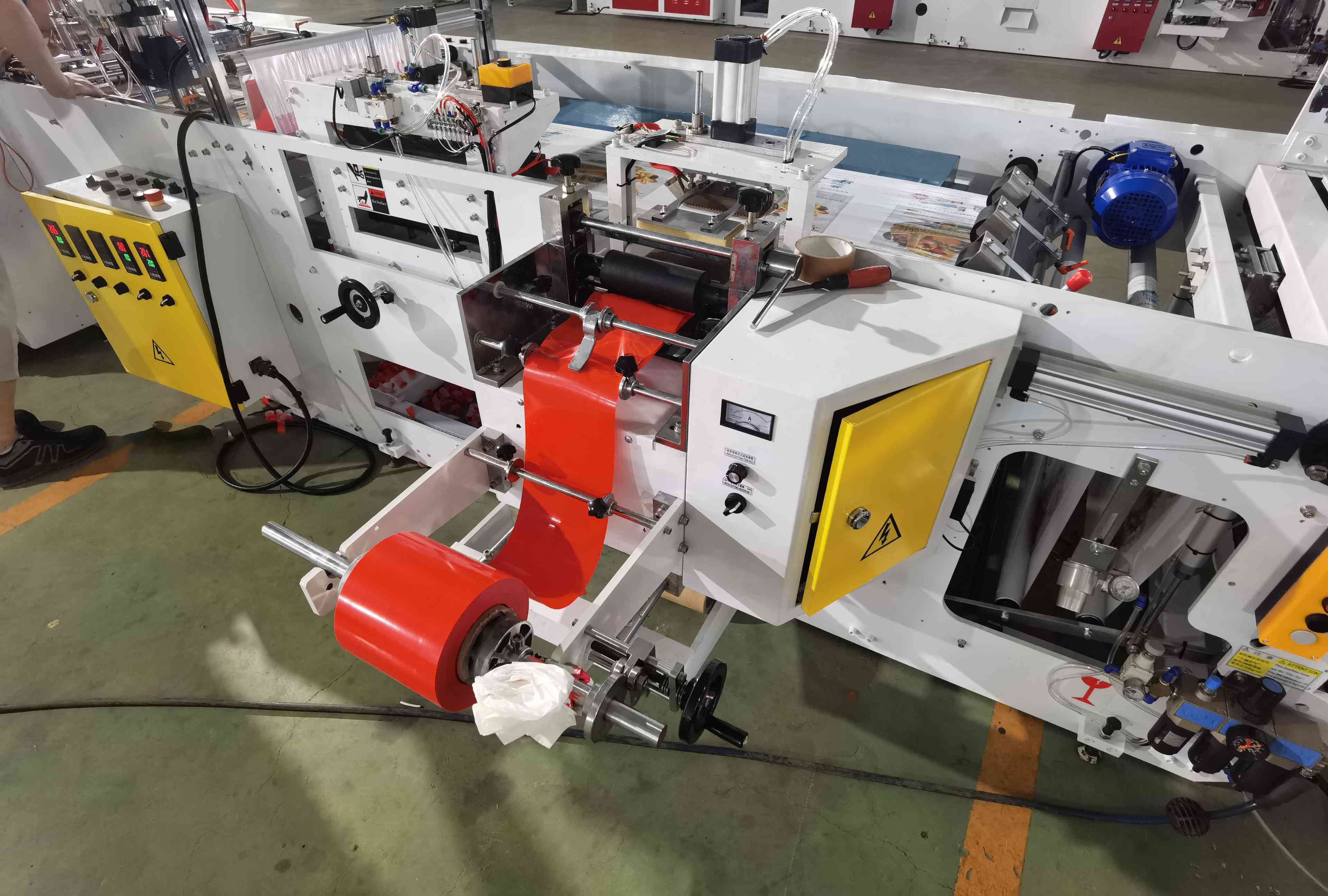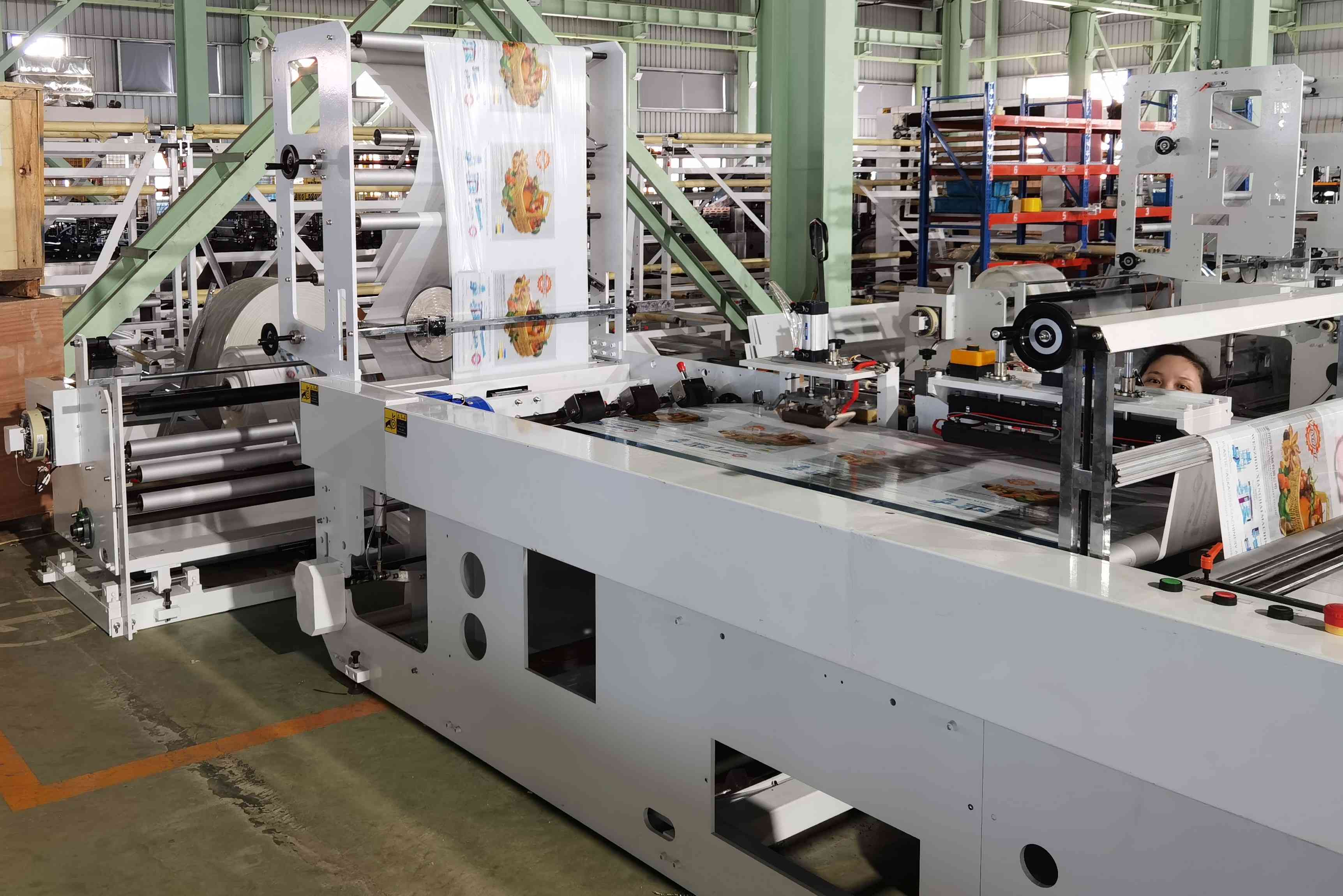 This machine has four functions (soft loop handle bag,patch handle bag,poly draw handle bag,die cut handle bag).