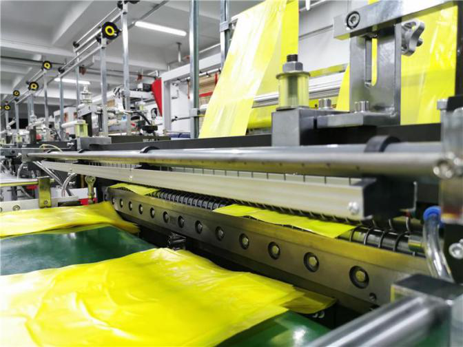 This machine is used for producing vest bags and flat-opening bags. The main motor adopts Taiwan frequency conversion motor to save more electricity and regulate speed more freely. The unwinder is Taiwan design, Same speed as main machine.And All electric parts is Famous brand.Long service life, high degree of automation, reduce labor, care for the environment.