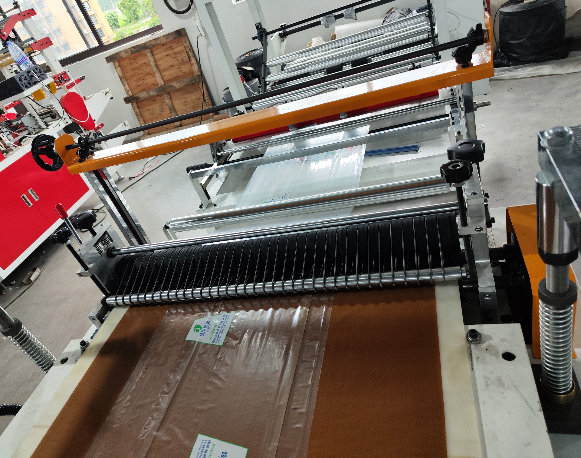 The machine frame is made of prefabricated flame cut sheet 12mm thick to ensure the machine rigidity, less machine vibration under high-speed running. Feeding motor, automatic control, save labor adjusted, stability in operation professional technician is not necessary. Any different type of the bag with several use as option, easy to replace.
