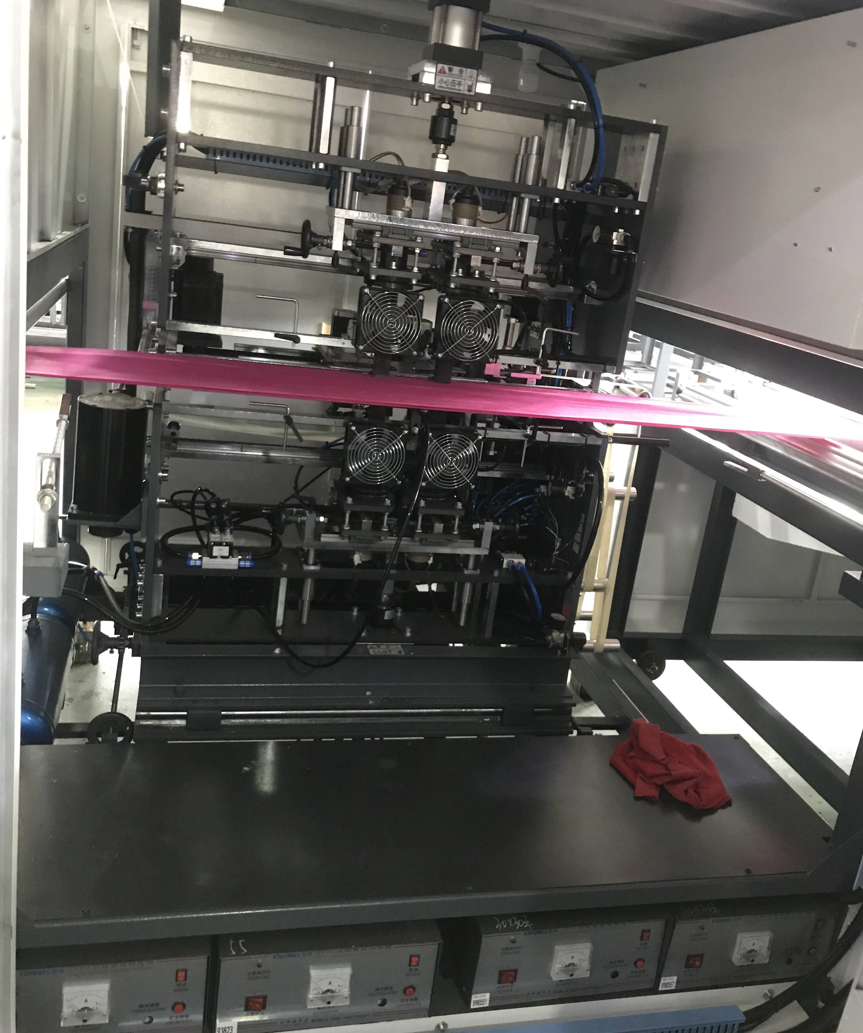 This machine is adopts computer orientation,photocell tracking,operation by man-machine interface tcuch,lrs adopts high waveband ultrasonic heat sealing principle.lt have functions like hemin bag orifice,threading,punching,ultrasonic heat sealing cold cutting,Etc it's a advanced machine for all kinds of non-woven fabrics handle shopping bag,shoes bag,haversack as 15-50g.