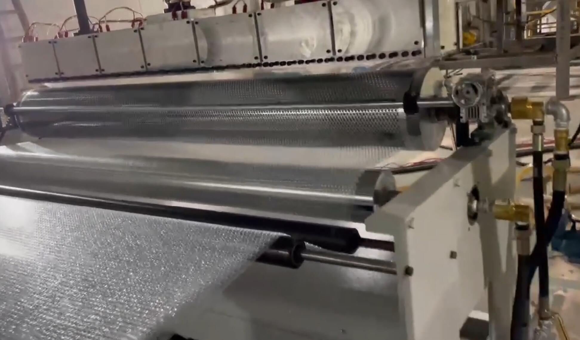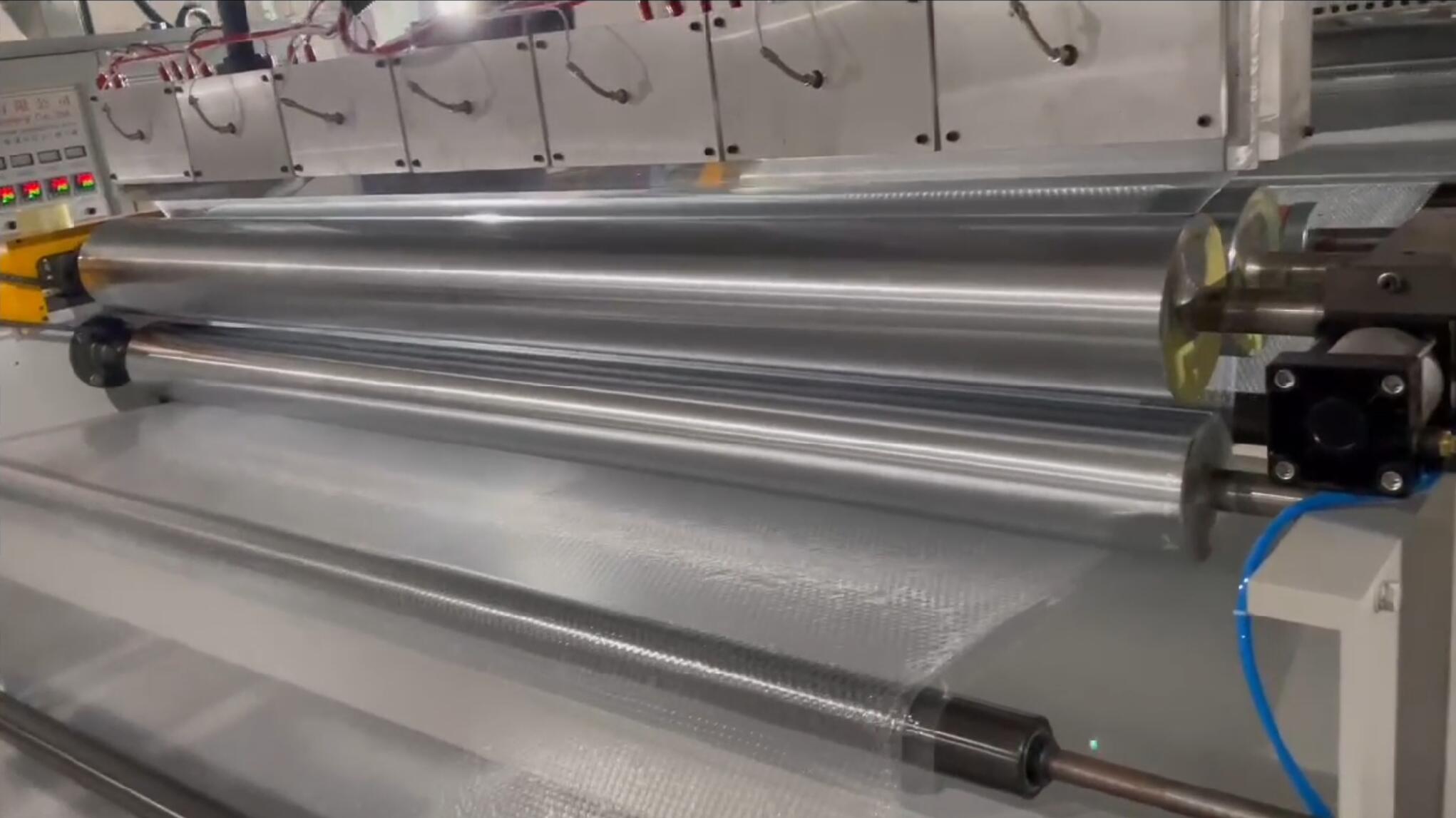 This machine is mainly composed of extruder, die, vacuum negative pressure system, bubble forming mold, traction mechanism,rolling flat body, winding mechanism, electrical control system .Add raw material from loader port until the finished product winder.